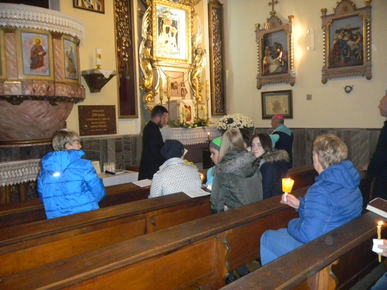Mimo oficjalnego zakończenia wizytacji Ks. Biskup został jeszcze z nami na comiesięcznymm Apelu Jasnogórskim. Podzielił się z nami swoim przezyciem spotkań ze św. Janem Pawłem II a na zakończenie udzielił wszystkim zebranym (ok. 60 osób) błogosławieństwa.