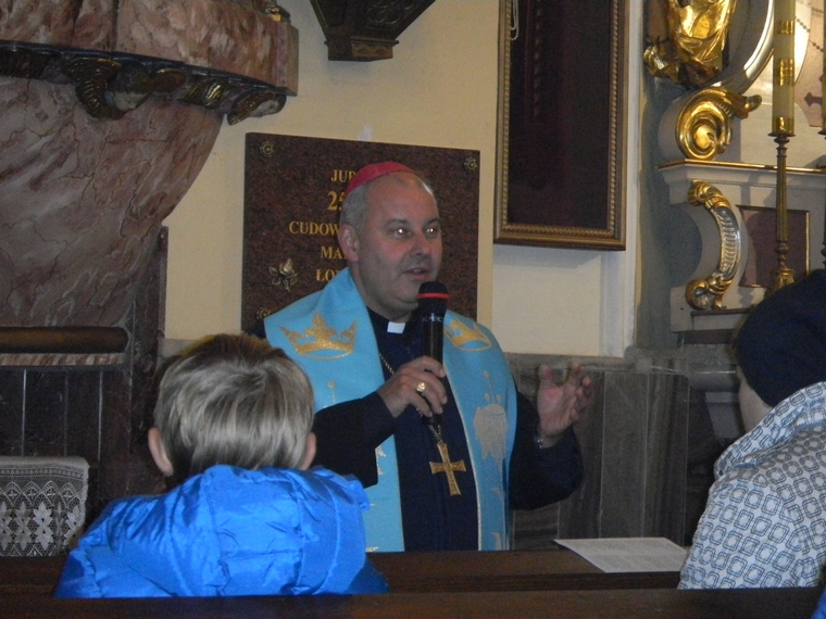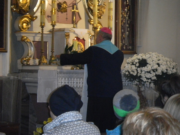 Mimo oficjalnego zakończenia wizytacji Ks. Biskup został jeszcze z nami na comiesięcznymm Apelu Jasnogórskim. Podzielił się z nami swoim przezyciem spotkań ze św. Janem Pawłem II a na zakończenie udzielił wszystkim zebranym (ok. 60 osób) błogosławieństwa.